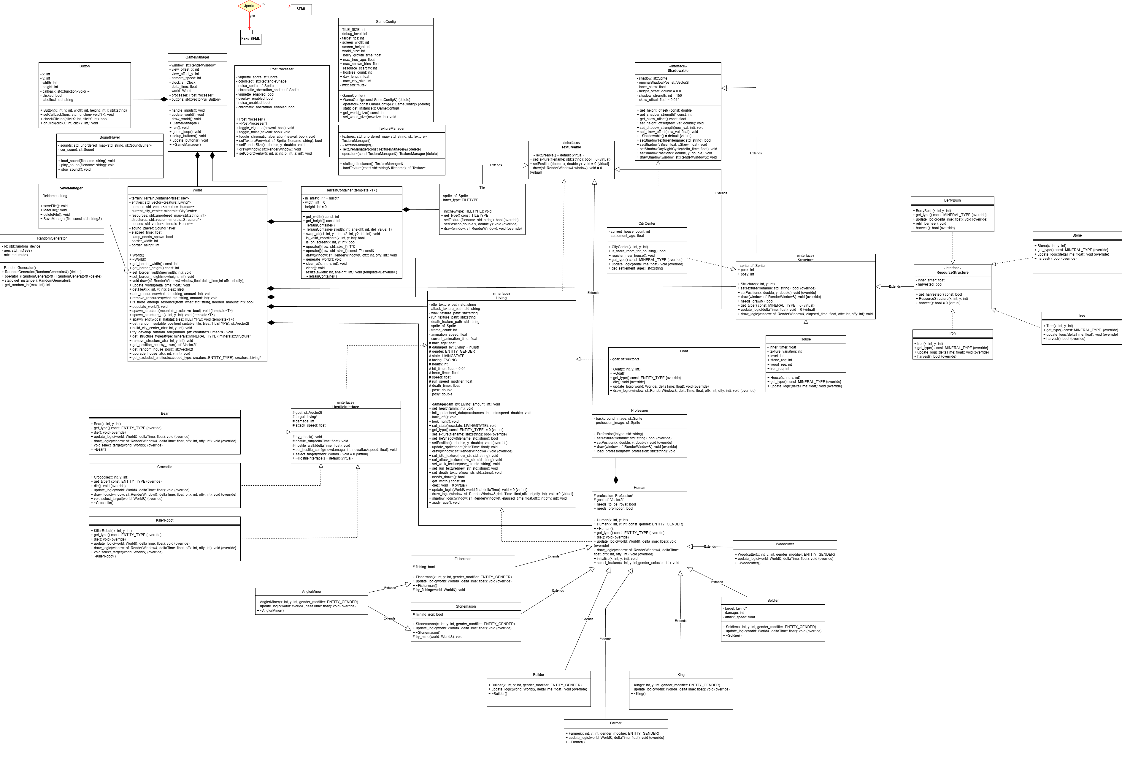A quite hefty UML diagram for my second semester humanity simulator which was made in C++.