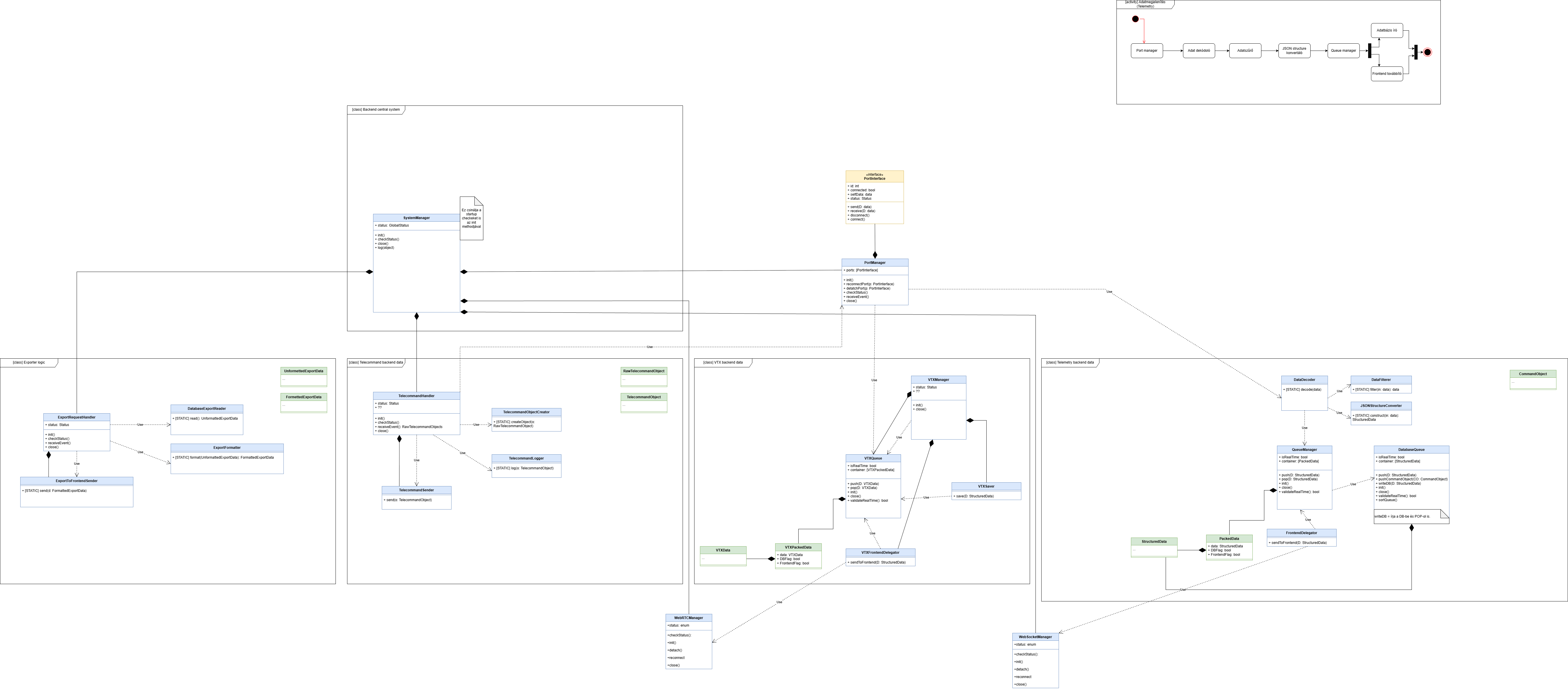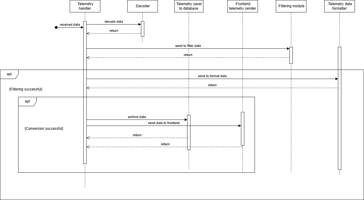 The data flow of the telemetry data in the backend from the ground support side.