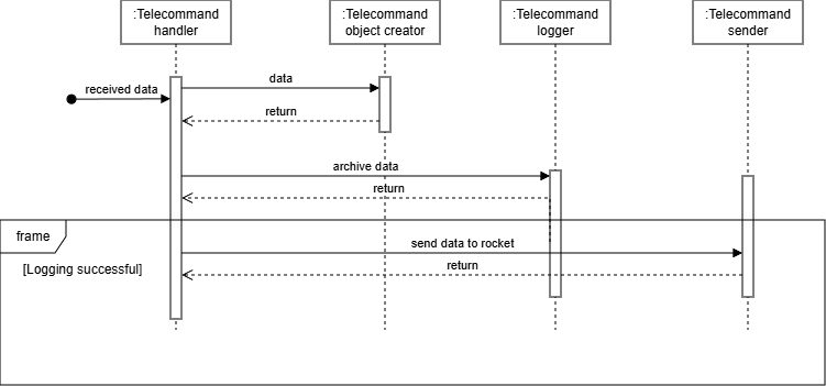 The data flow of the telecommand data and commands in the backend from the ground support side.