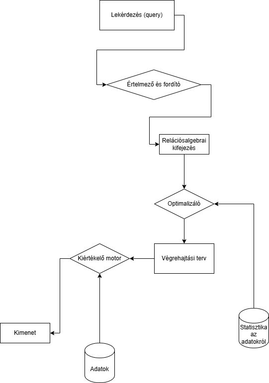 - Lekérdezés feldolgozó értelmezi, optimalizálás is szükséges: egy esethez több úton keresztül is el tudunk jutni.
