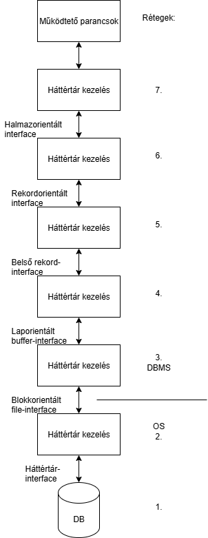 Az adatbáziskezelők általános statikus 7 rétegű modellje (környezetét is figyelembe véve):