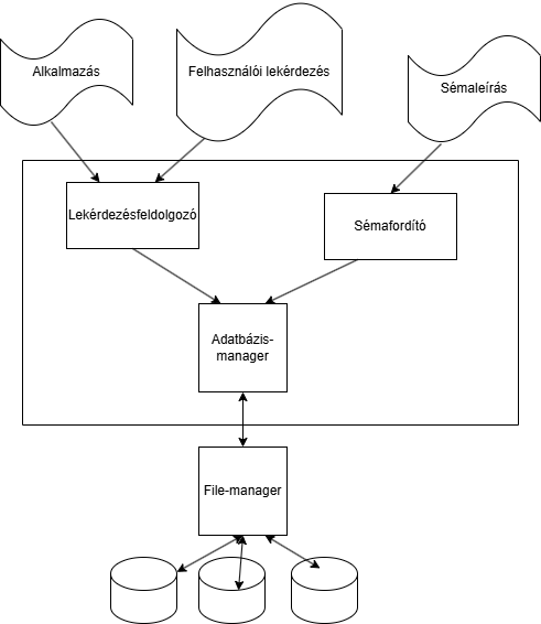Database manager: Ellátja fordított séma alapján a lekérdezéseket, adatvédelmet, szinkronizációt és az integritásra figyel.