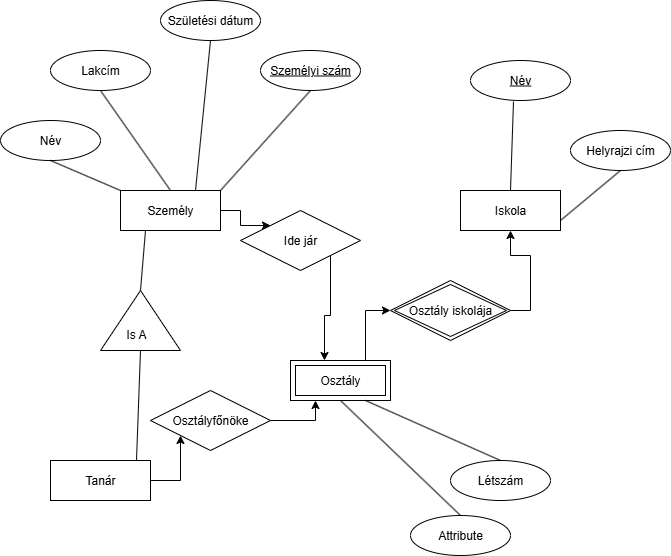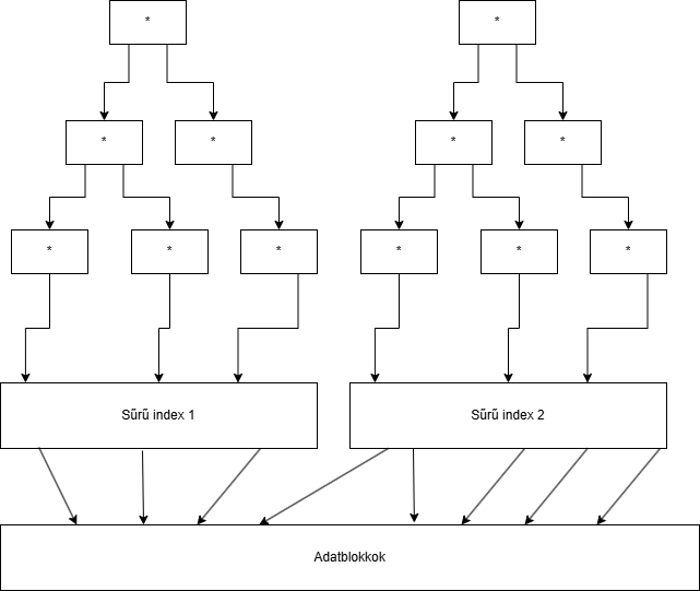 - Fizikai adatbázis: itt valósul meg az adatok fizikai tárolás, Pl: adatstruktúrák, amelyekben megvalósul az adattárolás.