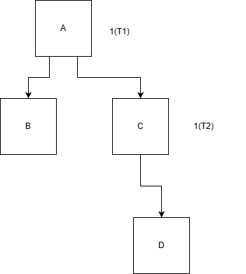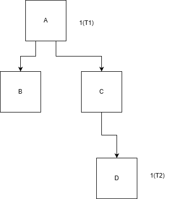 Ekkor D-hez csak T1 akkor férhet hozzá, ha T2 már elengedte a szülőjét.